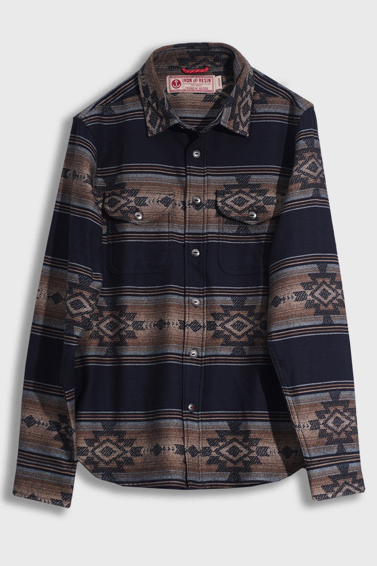 L’influence côtière d’Iron & Resin offre une couche durable et prête pour l’aventure avec cette chemise Klamath. Conception en flanelle offre un style sans effort. la chemise en flanelle Klamath est coupée à la main pour s’assurer que tous les détails tissés en jacquard sont entièrement alignés.
