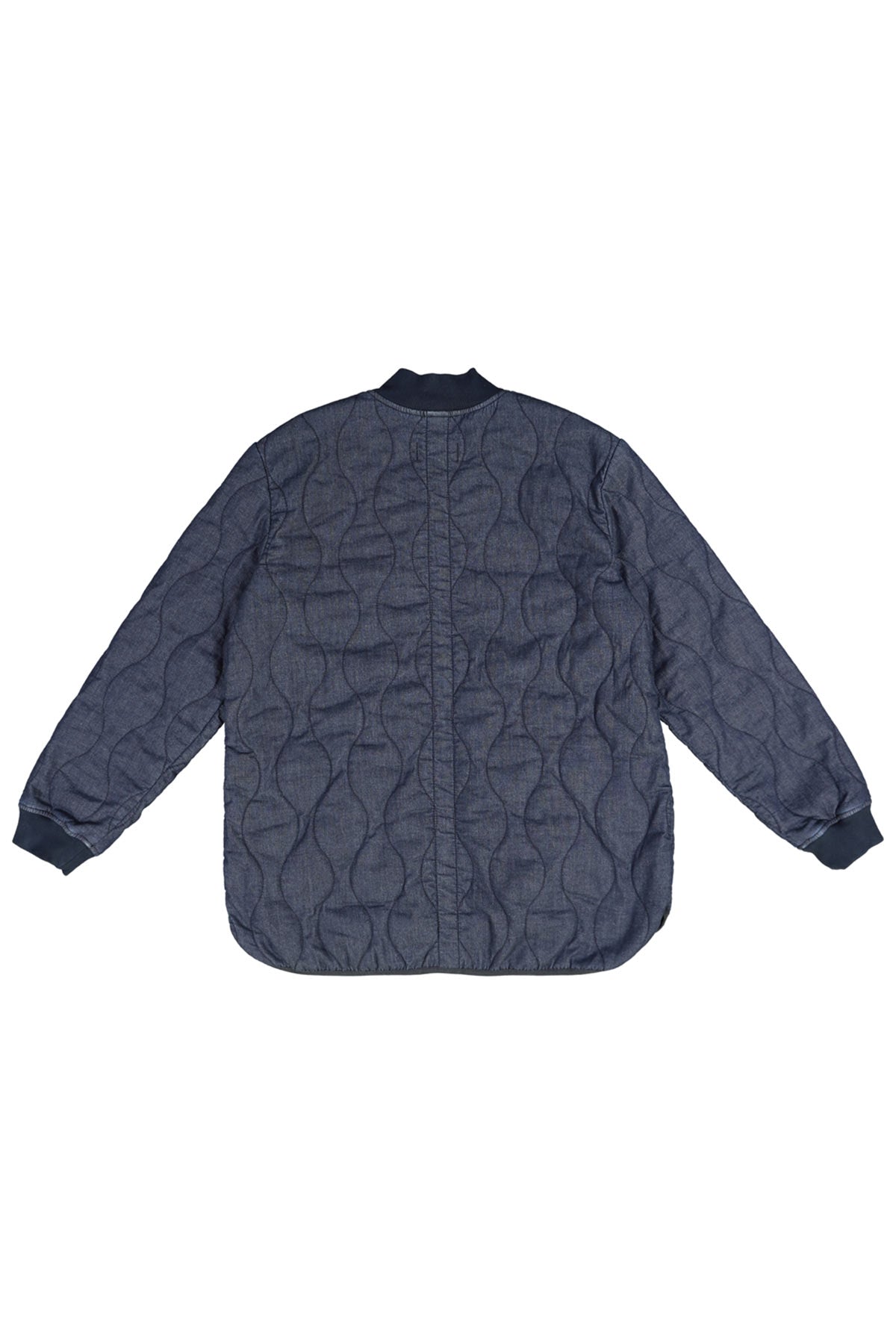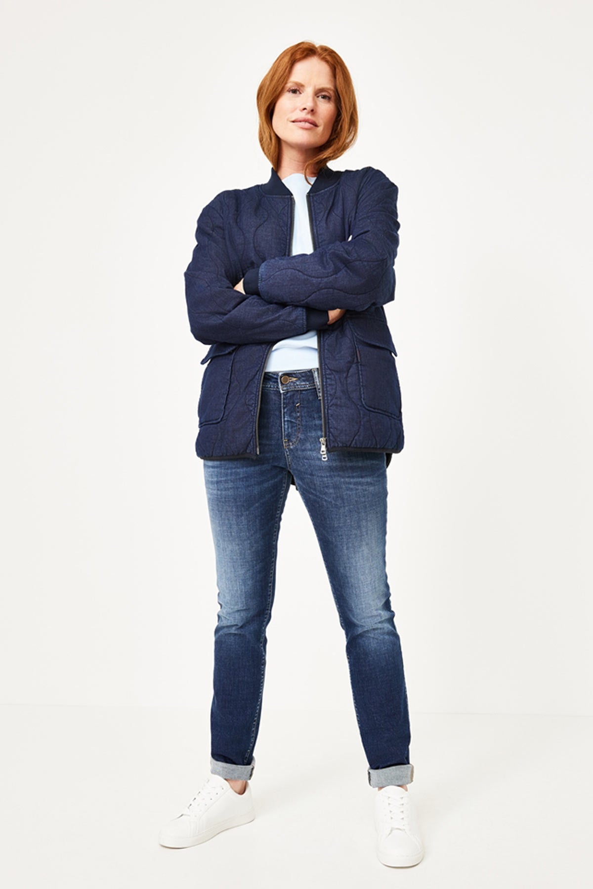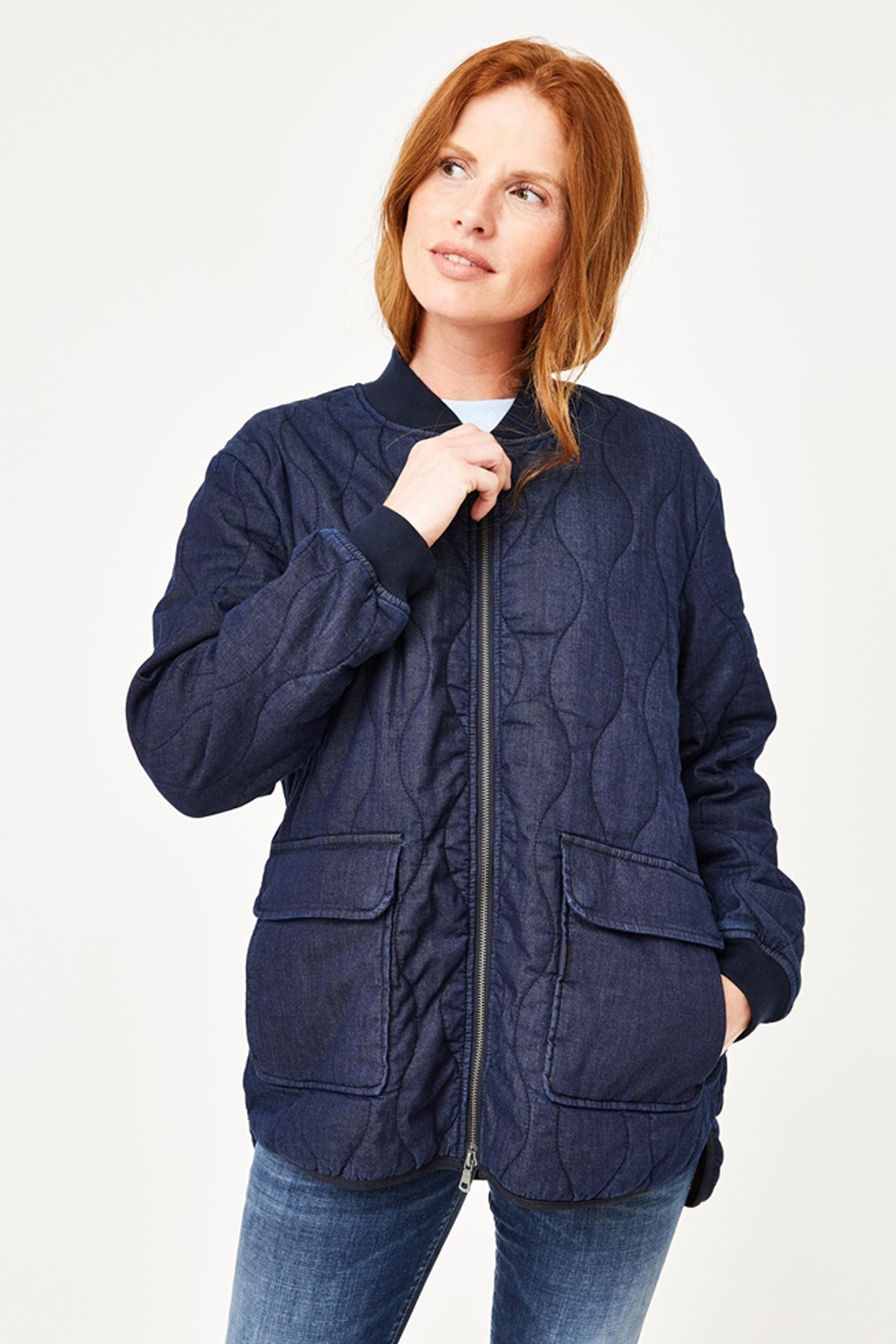Stylée pendant la période de transition - la longue veste matelassée en denim de haute qualité. Cette