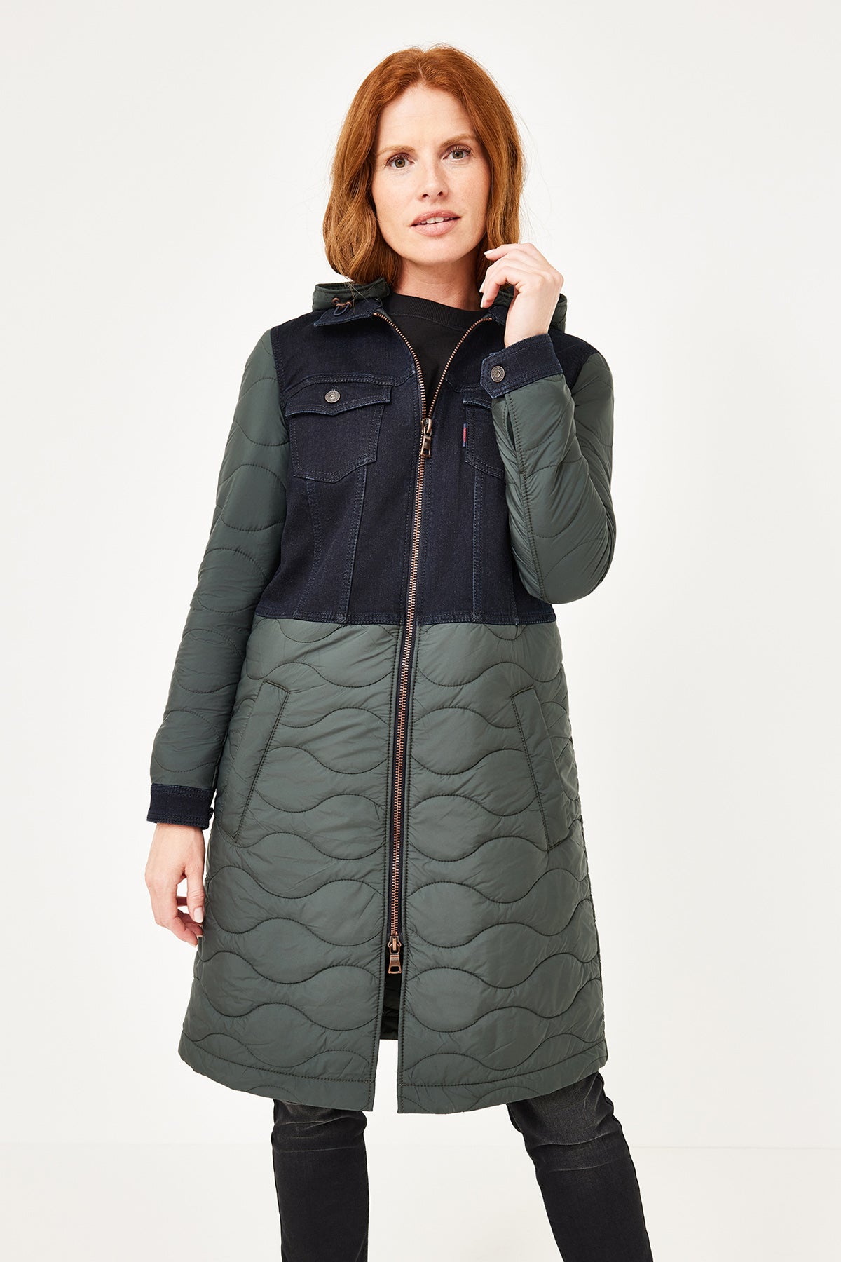 Un look décontracté avec des éléments de style particuliers – la veste longue Mix & Match combine...