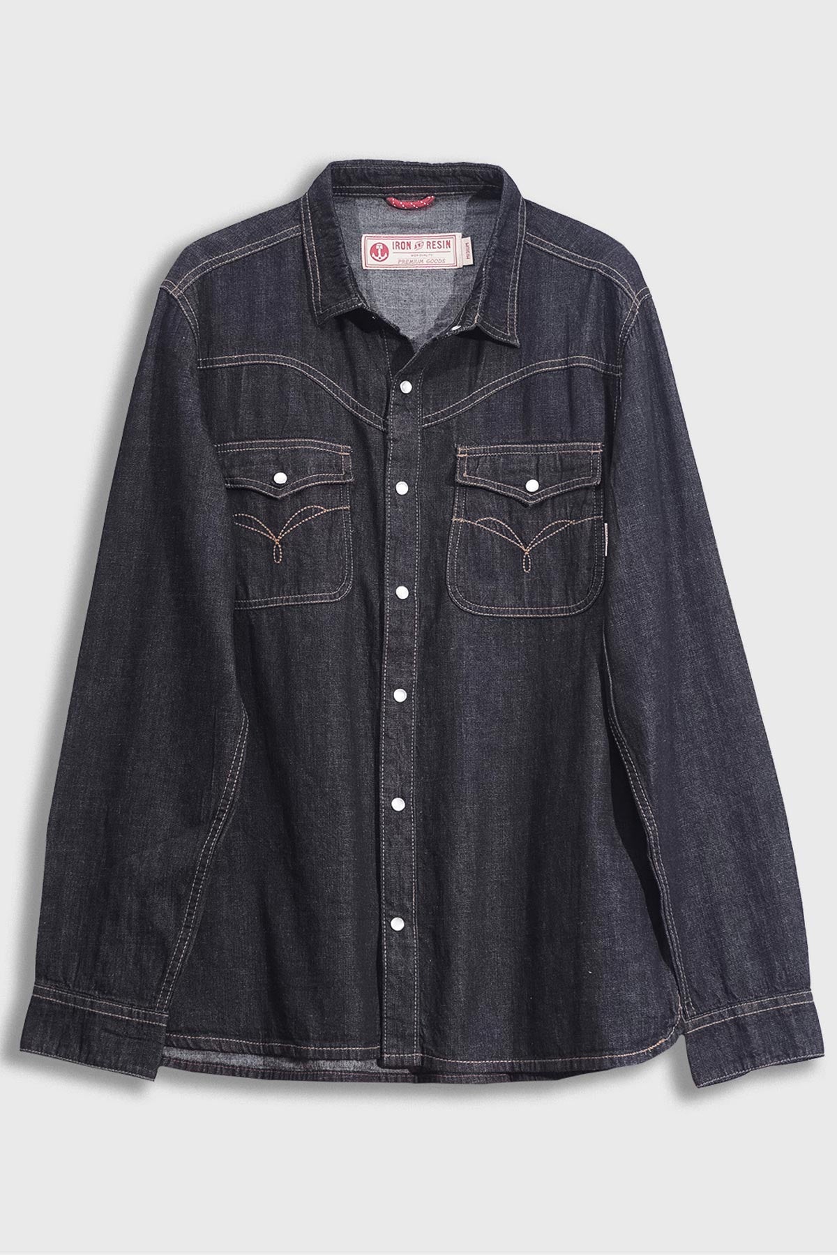 Magnifique chemise Iron & Resin, confectionnée en denim indigo et imprégnée de l'esprit des vêtements de travail western classiques, la chemise Jimson est faite pour durer.