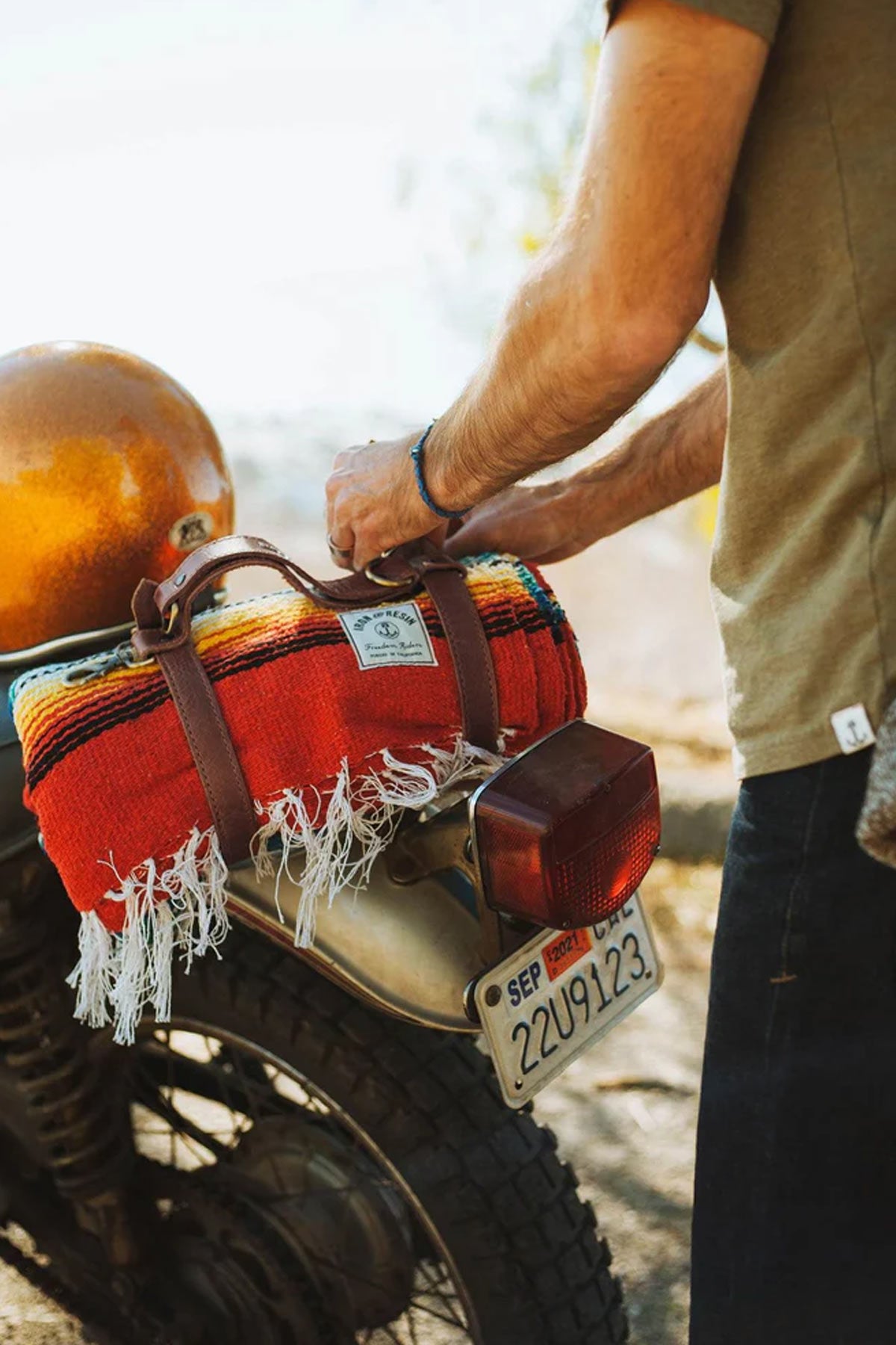 Notre rouleau de couverture en cuir fait exactement ce dont vous avez besoin : garder votre couverture bien roulée et bien rangée. Nous ne pouvons pas vous dire combien de fois nous avons utilisé cet appareil pour attacher une de nos couvertures à l’arrière du vélo ou simplement nous être roulés pour aller camper, car l’espace de sac et la commodité sont précieux sur la route.